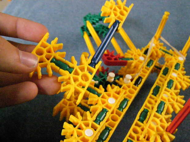 Killerk ha publicado fotos de su magnum pero nunca publicada el instructable así que aquí está.Paso 1: Crear el mango 1. conectar diez conectores verdes con una barra roja y agregar las piezas mostradas2. Añadir 5 conectores verdes y acople un conect
