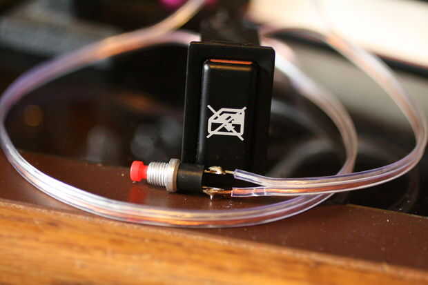 he utilizado cable de altavoz para conectar los dos interruptores en el circuito del killswitch. Es barato y fácil de trabajar. Les alambré en serie, por así decirlo, para que sea interruptor abierto impediría el coche a partir. Aunque los contactos primeros y cuarto fueron conectados para el circuito de cerradura de la ventana, unos momentos con mi medidor de ohm revelaron que la tercera y cuarta completaron un circuito cuando se presiona el botón. Conecté los cables a estos contactos, recortar una parte de la caja del interruptor para facilitar esto.