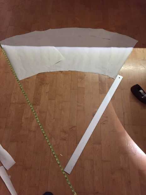 Diseñar el prototipo de papel en el piso como se muestra y verificar con una cinta métrica que la longitud de la cintura superior dobladillo base y longitud son correctas. Encontrar el centro de los arcos y corregir cualquier imperfección con el cono.