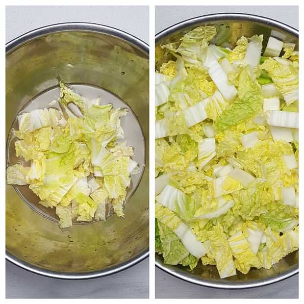 Remoje la col en agua salada durante 3 a 6 horas o hasta que estén suaves.