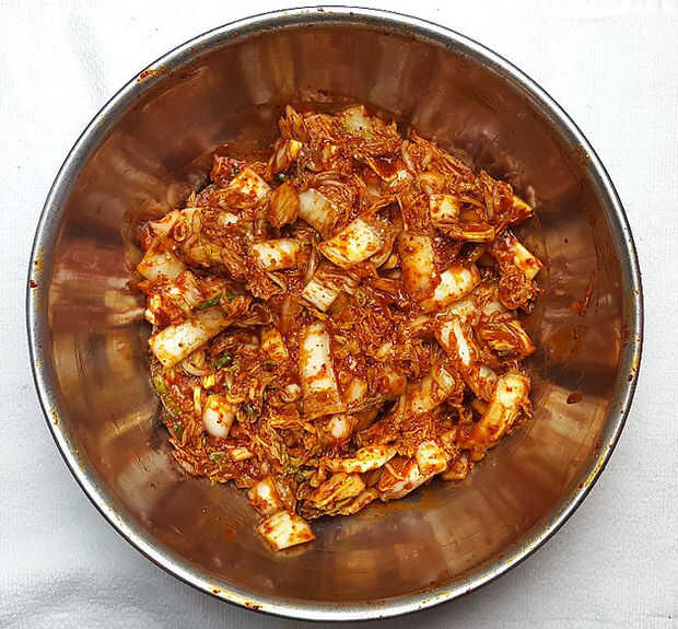 Kimchi es el plato nacional de Corea del sur. Picante, amargo y con gas, por lo general se hace de fermentado Col de Napa cubierto en una salsa de pimiento rojo picante. Definitivamente es un gusto adquirido para los no iniciados, los coreanos comen