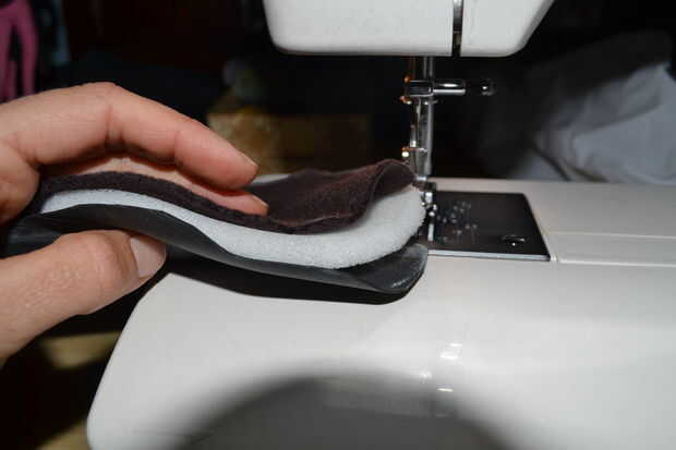 ponga el material esponjoso entre el polar y el tubo interior y coser juntos.
