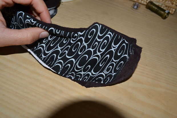 poner tela japonesa en polar y coser juntos. la parte superior y la parte delantera deben ser cosidos adentro hacia fuera.