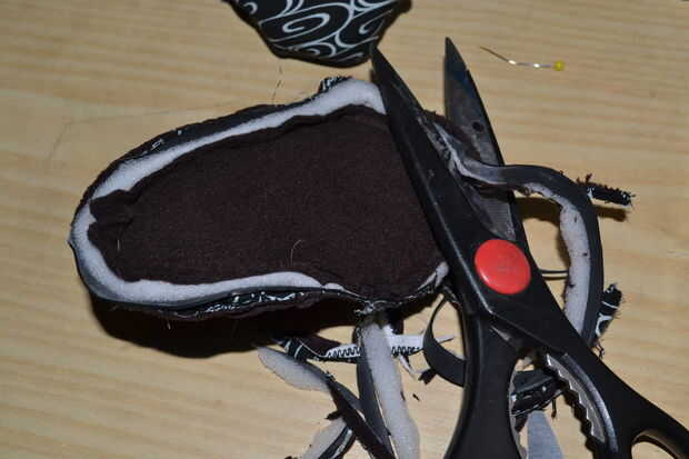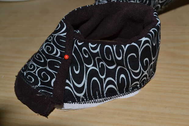 coser dentro hacia fuera de la suela con los costados de sus zapatitos, y cortar sobrantes de tela todo alrededor.