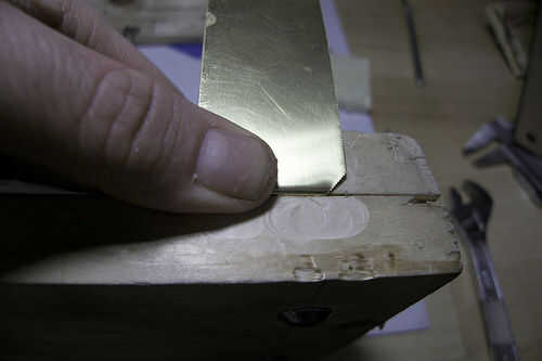 1) imprimir la plantilla PDF adjuntada y fijarlo a una hoja de.3 mm placa de latón.