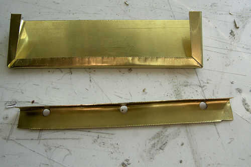 6) tenga en cuenta las muescas pequeñas en la parte inferior izquierda y derecha de las esquinas. Estos permiten la luz campana Deslice bajo la placa. Utilice una lima para eliminar alrededor.1 mm de material en las esquinas.