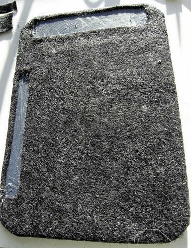 5) Utilice pegamento caliente para fijar el fieltro a la base. Recortar las esquinas para hacer un buen ajuste redondeado.