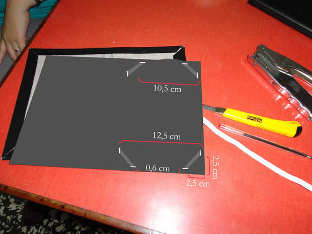 En EVA (espuma) que tenemos que hacer algunos cortes como se indica en la foto, tienen una separación de 0.6 cm del paralelo, los extremos son 2,5 cm y 10.5 cm más distante pero desde ese punto de atención en el interior hace el corte. El último es de 12,5 cm.