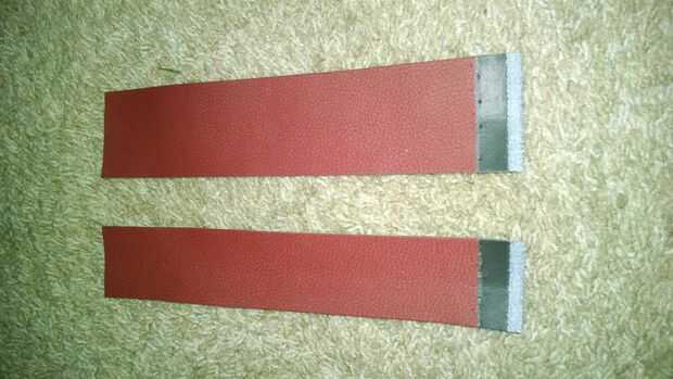 Cortar tres tiras de vinilo sobre la misma longitud que la pieza de la espina dorsal, sobre 1 1/4 y uno 1" amplia.