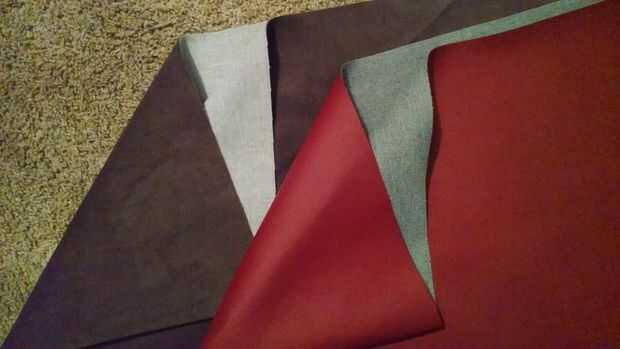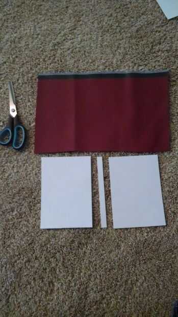 Simplemente coloque las piezas de la cubierta externa, siendo los dos más grandes cortes y la delgada franja. Deben ser 1/4" aparte en los bordes laterales, con la tira formando lo que será la columna vertebral entre lo que será la parte delantera y tapa trasera.