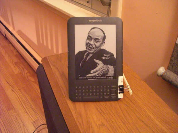 Clip el clip binder en la parte inferior derecha o izquierda de tu Kindle. Si lo desea, utilice la tarjeta para proteger el Kindle de arañazos al colocarlo entre el clip y el Kindle.