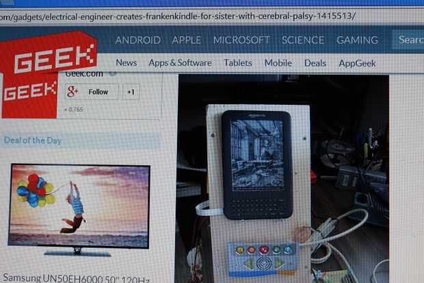 Bueno, aquí es un proyecto llamado el FrankenKindle por un ingeniero de intentar hacer algo parecido electrónicamente para un pariente con parálisis cerebral. Trabajado pero asumi un montón de Kindle-hacking para llegar allí por la mirada de él.