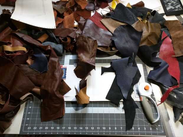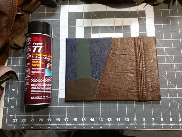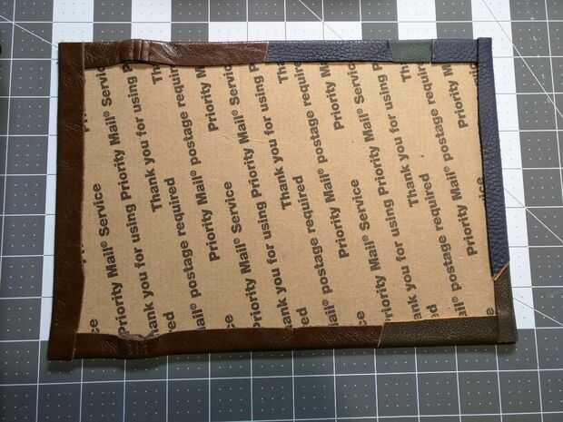 Tomando el patrón de la tapa que hice, corte un trozo de cartón correcto de una vieja caja de USPS, ya que cuenta con cartón rígido sin ser demasiado espesa. Luego comencé a averiguar cómo quería decorar la tapa. Ya sabía que tenía un montón de diversos restos de cuero poniendo alrededor. Yo sólo puso hacia fuera hasta que vi un modelo que se veía bien. Corté las piezas de ajuste y utilizando adhesivo en aerosol para montaje a la cubierta. Después de pegado abajo y aplicando algo de peso para asegurarse de que el cuero era uniforme y bien adherido. Que tamaño y cortar una pieza de cartulina para pegar en el interior de la cubierta para mejorar el aspecto. Y con la cobertura es completa.
