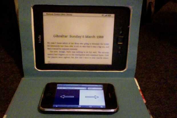 Se trata de una solución de software a vuelta de página remota en un kindle. En Resumen, estoy ejecutando un servidor Web de mi kindle. Esto es servir a un script cgi que imita a una pulsación de botón en mi kindle. Acceder a los scripts desde un navegador en mi movil.