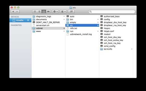 Poner httpd.conf en /mnt/us/usbnet/etc