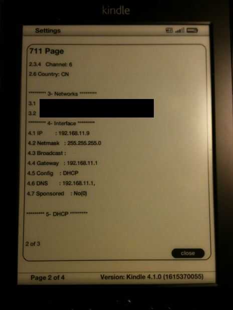 En un kindle 4 NT, esto se hace yendo a Menú -> configuración. Presione y mantenga presionado el botón del teclado y presione el botón de avanzar página derecha. Esto trae para arriba la "página 711". Dirección de ip del kindle es en la segunda página de este cuadro de diálogo.