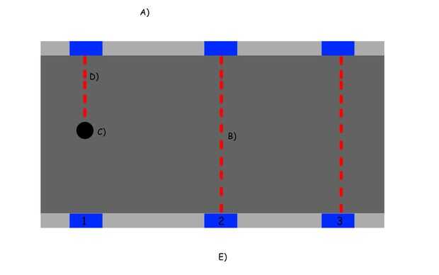 B) entre un sensor y su emisor correspondiente, habrá un haz de luz infra-rojo. Este es el mecanismo que se utilizará para detectar si un objeto lo pasan o no. Si se recibe la luz, entonces no pasa nada. Si un objeto pasa a través de la viga, bloqueo de la viga, el sensor que se grabará el tiempo (t = segundos Y) que el objeto rompió la viga.