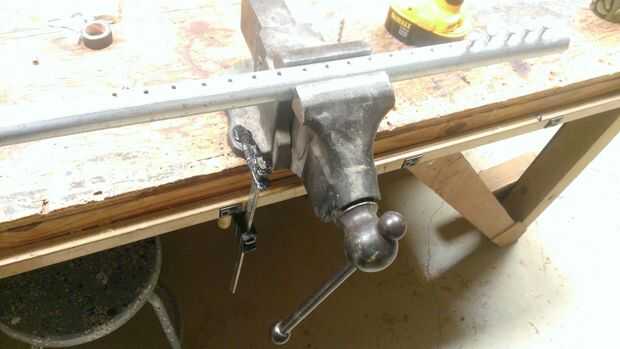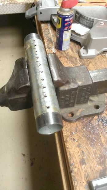 Cerradura de cuello: tomé 3' pedazo largo de 1" rígido. Perforados y roscados 1/4 X 20, 20 piezas y luego cortarlas 1" de ancho. Molida y rebabas de los extremos para una sensación más suave. (cualquier casa de electricidad)