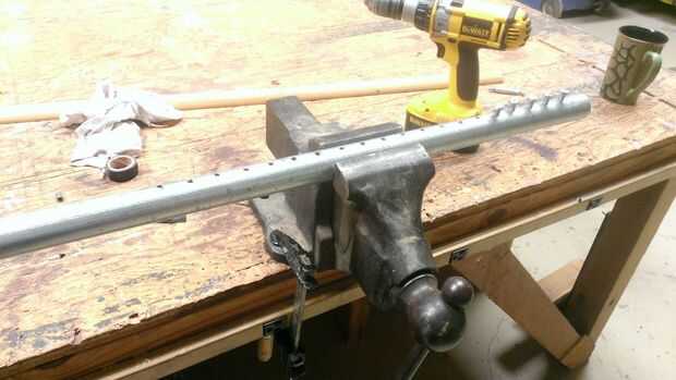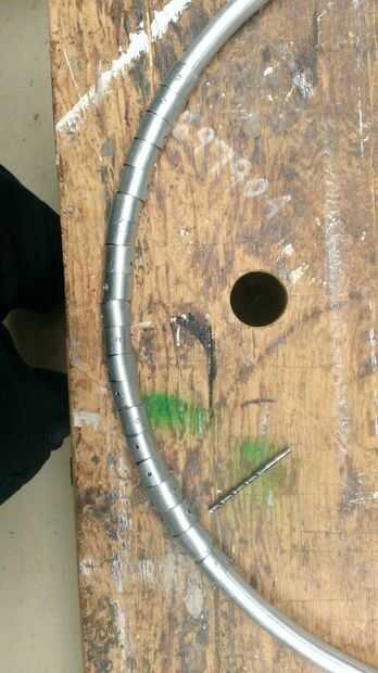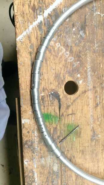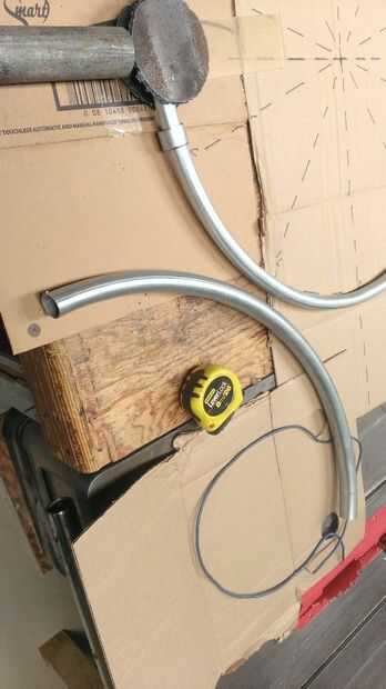 El aro: tomé 3/4" EMT y doblado con un doblador de tubo de 1 1/4". Es no el aro circular más. pero, ¿cuántas flores son perfectos? Mantener esto como un tema. Tenemos mejor rodamiento de rodillos dobladores pero quería que la hecha a mano efecto (cualquier casa de electricidad)
