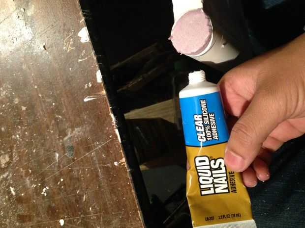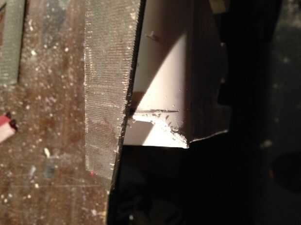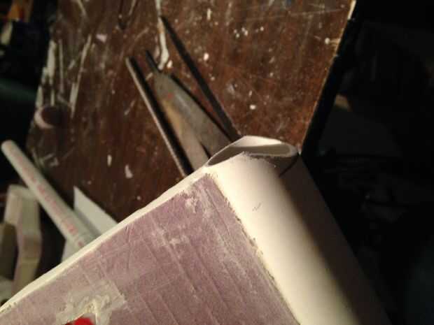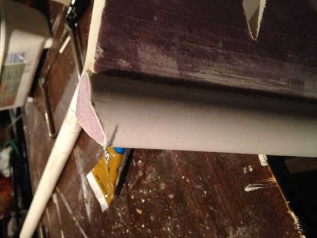 Capa de la clavija en el líquido de uñas e inserte en la clave. Dejar reposar un rato antes de empezar a cortar para arriba. Una vez que está seco o no se mueve más, seguir adelante y recortar la espuma para emparejar la inclinación y el borde del PVC. Arena. Compuesto de juntas. Arena. Compuesto de juntas. (Asegúrese de que le Spackle si la cartilla no es segura la espuma.