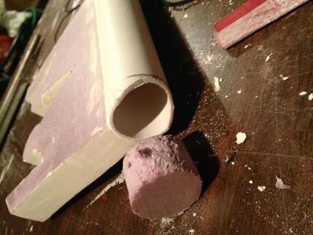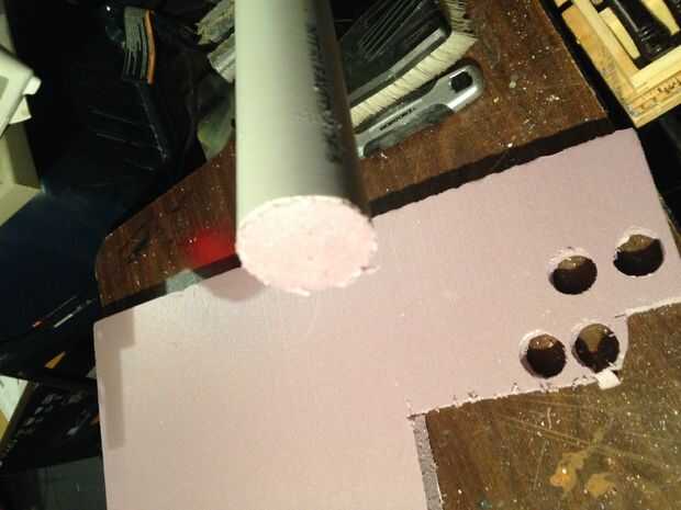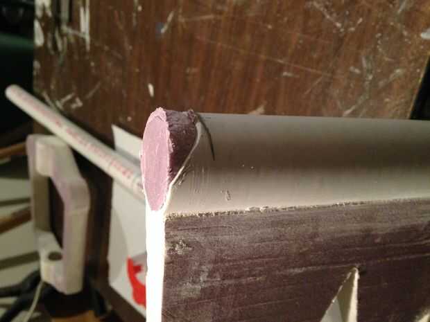 Una vez hecha la inclinación, tenemos que el extremo de la tubería. ¿Recordar ese pedazo de 1" PVC que nos afiladas? Bien adelante y meter en la espuma y consigue un tapón poco agradable. Para quitar el tapón de PVC, tomar algo que encaja en el PVC y salte la espuma.