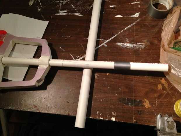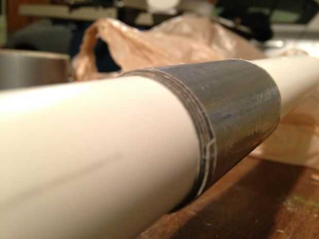 En primer lugar, tomar 3/4" e insértela en el mango. Hacer las marcas donde se encuentra con la espuma de la manija. La tubería de 1" debe ser 2" del borde de la espuma. Hacer así marcado.