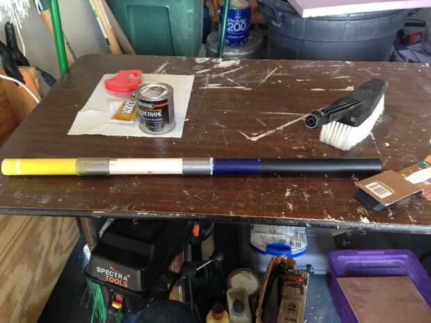 Para hacer el tubo de la manija, usé pintura de acrílico. He pintado la zona que tienes negro y la otra área azul. Capas un par de veces para darle un color rico. Realmente simple.