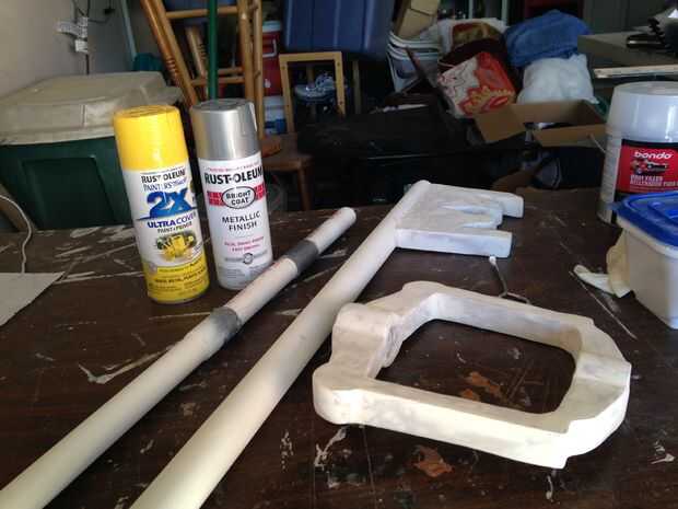 La tubería de 3/4" va a ser pintado a mano dos colores diferentes. La llave y la manija será colores sólidos. La clave será plata metálica y el mango será un color dorado/amarillo.