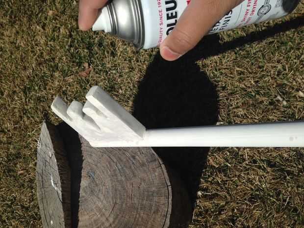Para la clave de la pintura, agarré otro trozo de PVC que encajan dentro de la clave. Envuelve con cinta aislante para que se ajuste mejor. Ahora puedo sostener la menor PVC y pintura y girar la llave. Esto también me ayudó a colocar a secar.