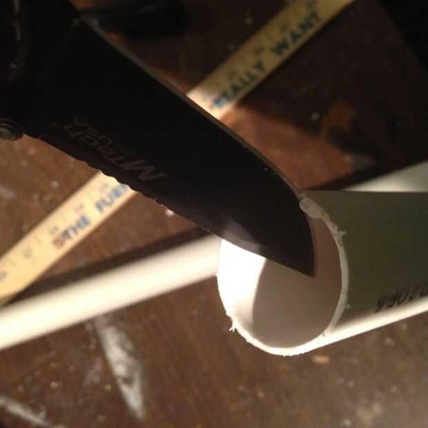Para la espuma de 1", será necesario el corte de la pieza de 10 pies hasta unos 28". Dependiendo de lo que se utiliza para cortar, también necesitará pulir esa ventaja para que sea agradable. Formar parte de la restante 1" PVC y afilar el extremo como lo hizo con el 3/4". Esto va a ayudar a cortar el enchufe que pasará al final de la misma.