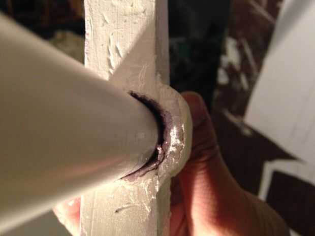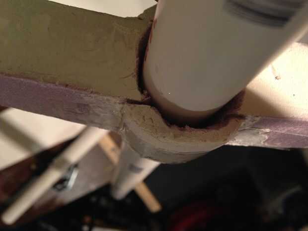 Hacer uno a la vez. Después de hacer la primera de ellas y recorrer todo el camino, retire el tubo. Te darás cuenta que es un ajuste muy apretado para el tubo en el agujero. Tomar algún grano 60 y abrir el agujero un poco. No quiere demasiado grande, o tendrá un espacio más adelante cuando está pegando arriba. Una vez que el tubo se deslice fácilmente debe ser fino.