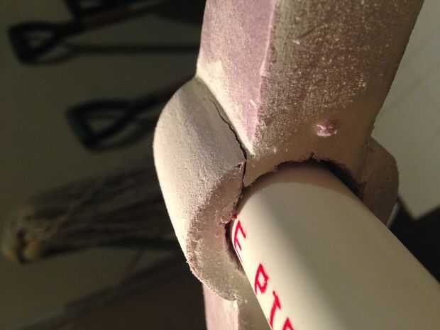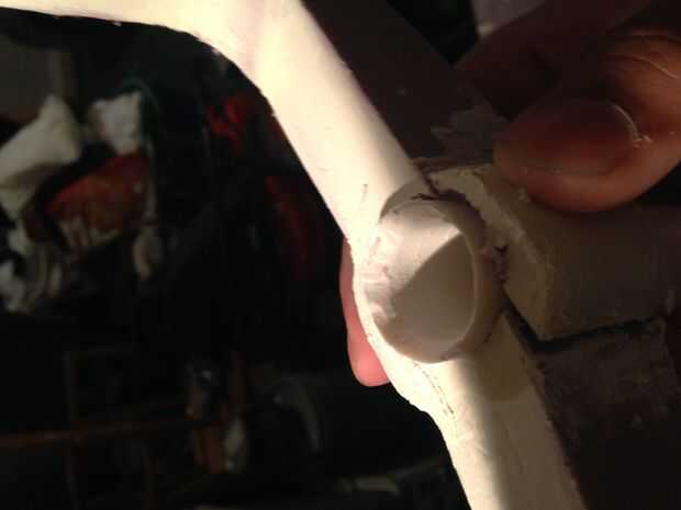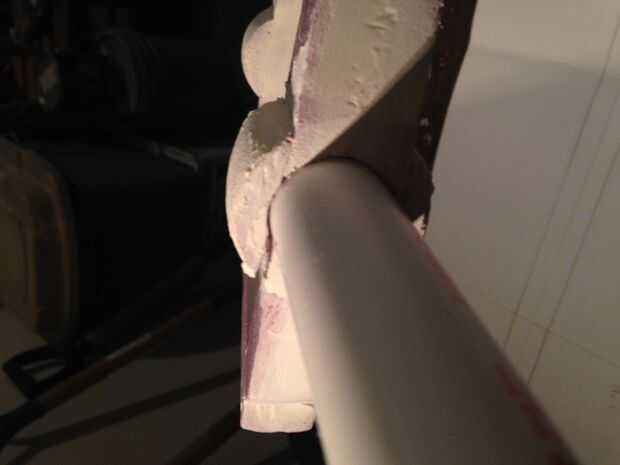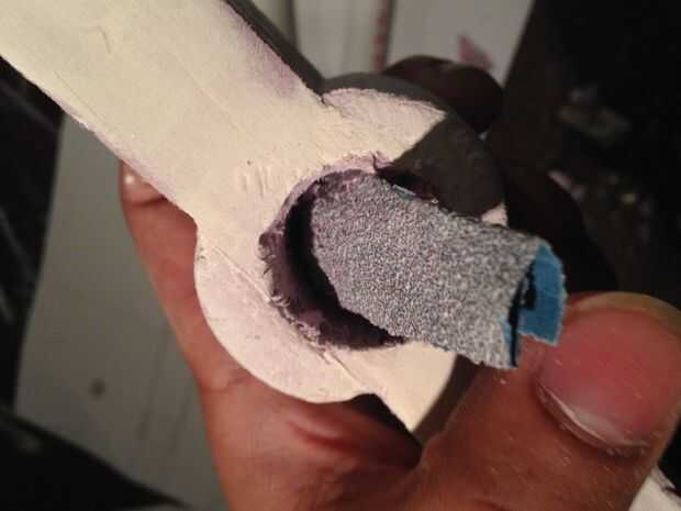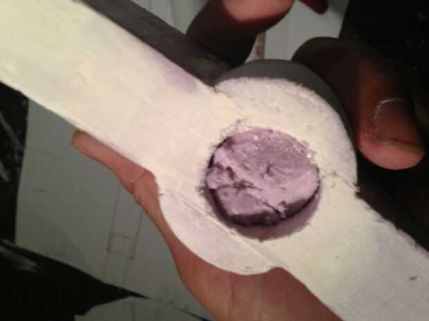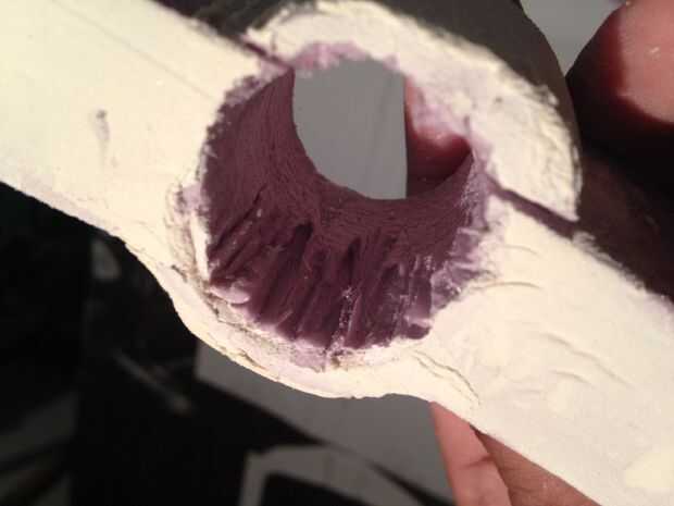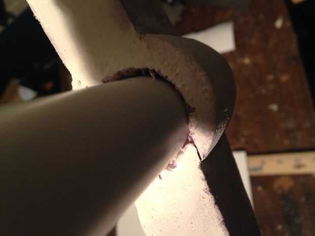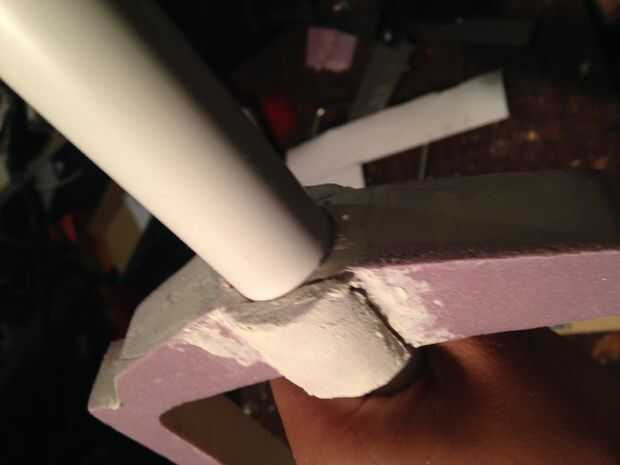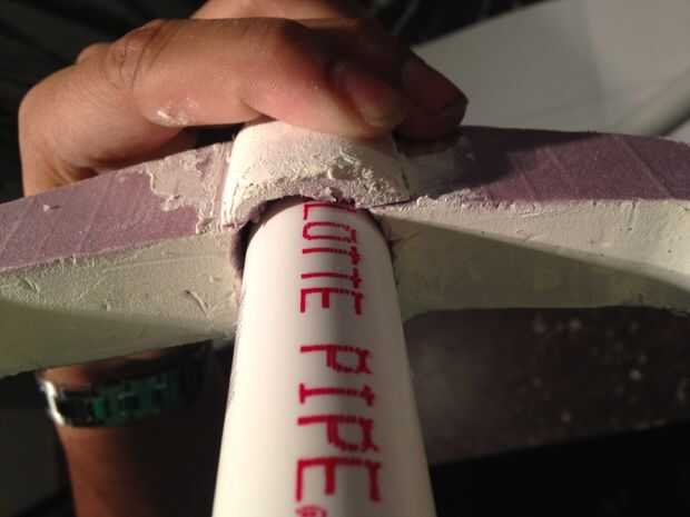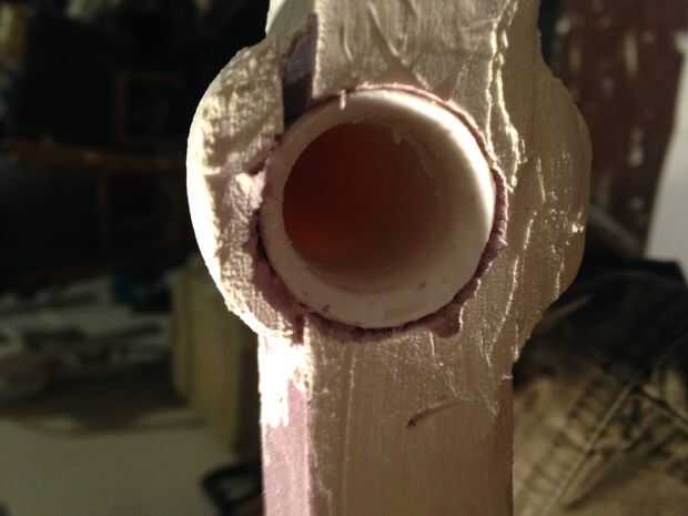 Quitar la espuma del interior de la tubería y vuelva a insertar el tubo a través del agujero hacia la base de la manija. Unidad en la base pero no recorrer todo el camino. Ir hasta la mitad. Retire el tubo. No tienes un enchufe que va a salir con el tubo. Usted necesitará tomar un cuchillo para destruir el área dentro del círculo de la pipa hace. Luego pulir la zona.