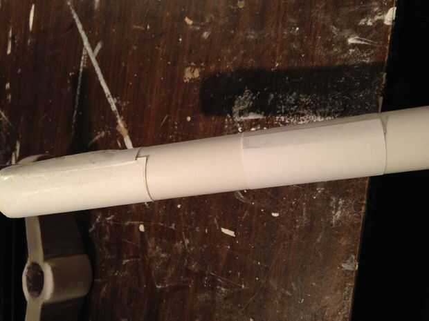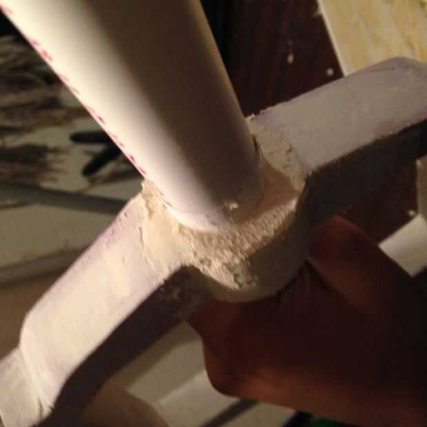 Ahora, toma Spackle y rellena todas las áreas que tienen agujeros. Rellene hasta el papel. Cuando haya terminado, puede eliminar el PVC, pero no retire el papel.