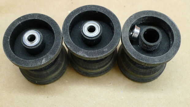 - Imprimir los archivos de rodillo, encontró aquí. Imprimir 3 de los rodillos lisos de ralentí y uno con piñones en ella.