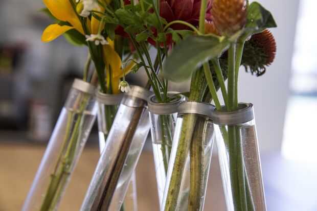 Añadir tus flores favoritas y diviértete moviendo los jarrones alrededor, pero tenga cuidado de mantener una formación estable.