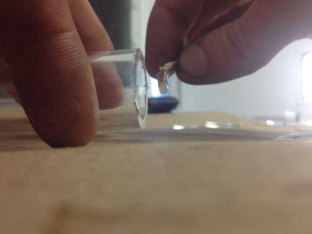 El bolsillo de los imanes fue cortado precisamente lo suficientemente seguro por simplemente presione ajuste, pero los círculos de la parte inferior de la base requieren algunos epoxy para hacer el sello hermético. Simplemente mezcle algunos epoxy y adherir los círculos base en el extremo de los tubos sin los imanes. Cemento acrílico (que corrí de) funciona tan bien para este paso.
