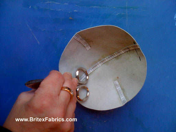 Tratan de no distorsionar la kipá fuera de forma; sólo tire liso a lo largo de las costuras reforzadas. No tire en las áreas sin refuerzo, expandible.