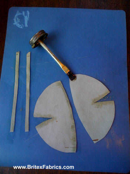 Aplique una banda de 1/4 de cemento, cepillo desde el centro de cada pedazo grande hacia el diámetro y dart bordes - no a lo largo de la circunferencia.
