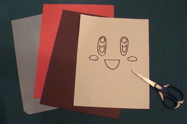 20. luego tomar la cara calcada de Kirby que formuló y remontar hacia fuera en papel de construcción. Y recortarlo.