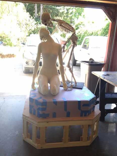 La estatua original tiene un verso sobre él en latín - traducido, cambiado el género (hemos utilizado un cuerpo de la mujer) y luego lo diseñado en Illustrator y azulejo impreso para la talla.
