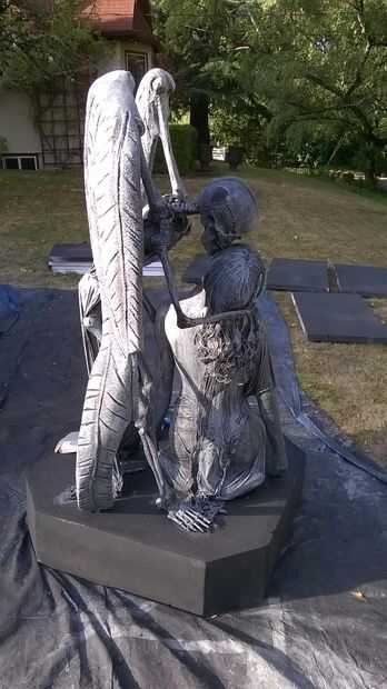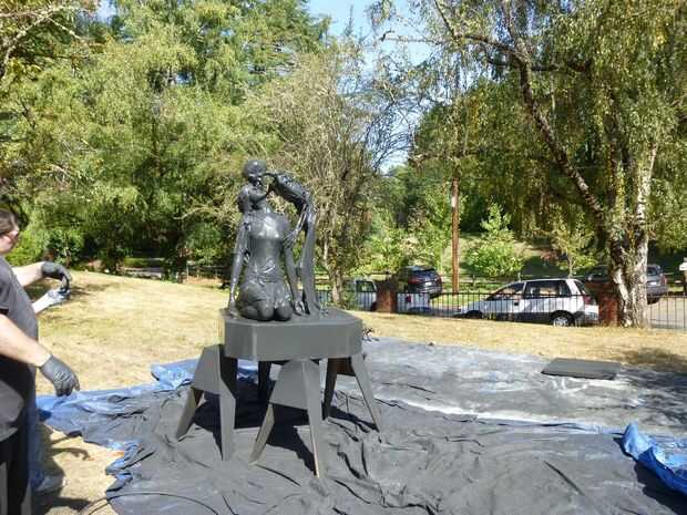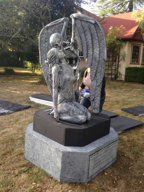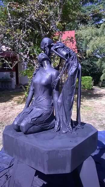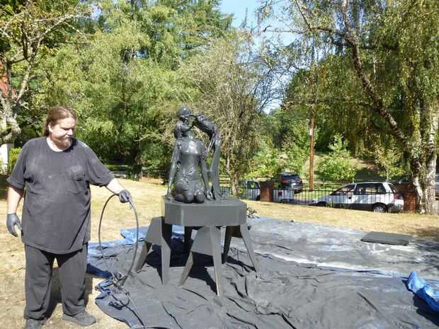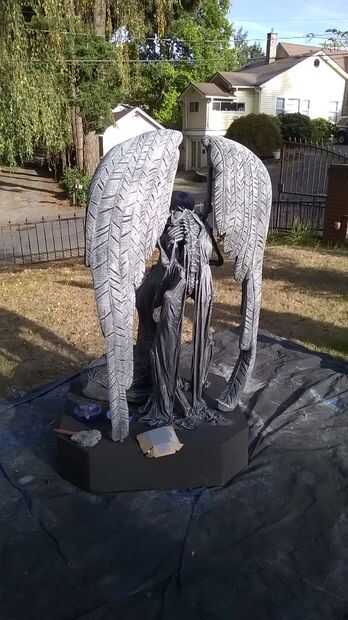 Nosotros entonces 'envejecido' la prop. Hacemos esto con una mezcla de agua y casa exterior negro sobre 50/50. Tomar un frasco rociador de agua y rocíe donde quieras tus zonas de goteo (de los altos puntos de la Proposición) y luego tomar un pequeño pincel con la pintura negra descafeinada y goteo donde el agua naturalmente se agota la estatua, que tomar un trapo seco para limpiar las gotas por lo que se ven como el tiempo en lavarse brink y no goteo rimel.