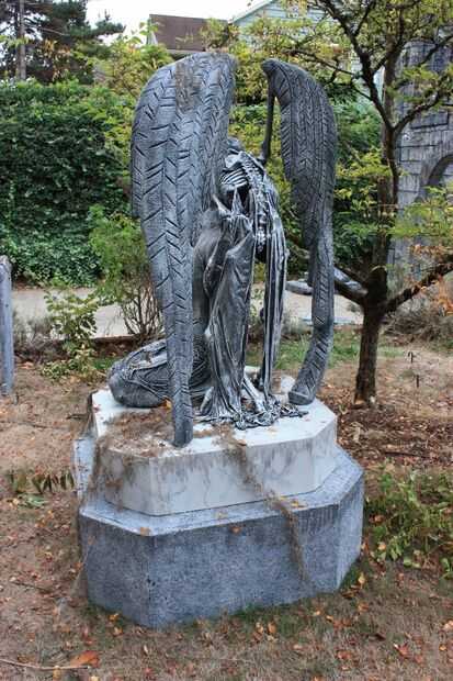 El mármol de las bases que la estatua se encuentra en forma de pintada en el color de pintura gris claro y luego el acabado mármol fue pintado a mano.