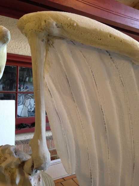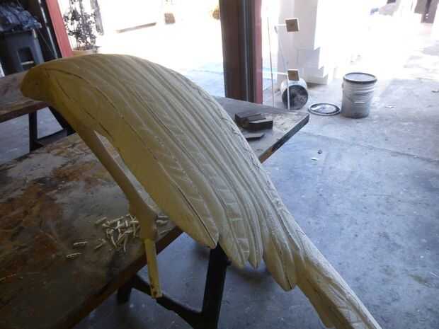 Luego las alas fueron formadas con una lijadora de mano y una escofina de yeso.