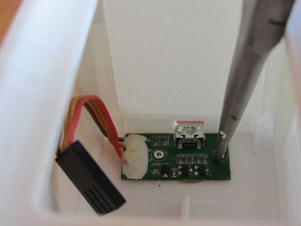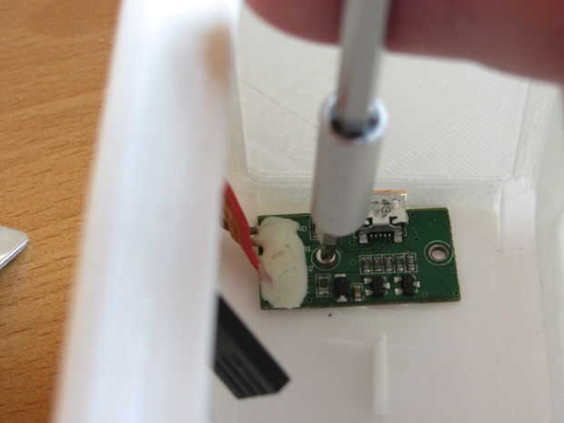 • Como se apretaron los dos tornillos pequeños, mira a ver que los puerto USB se alinea correctamente con el orificio externo para que un cable USB puede alinear correctamente.