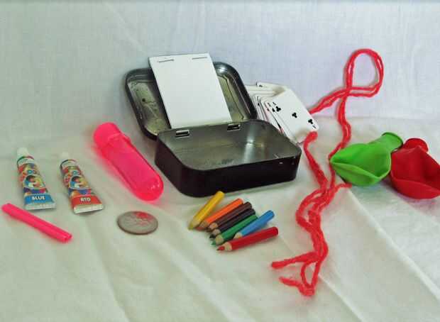 Otras ideas: pequeña armónica, adivinación pescado, pequeño reloj de arena para juegos de palabras de sincronización o cuánto tiempo puede aguantar su respiración, pequeña cubierta de adivinación de cartas (he visto algunas en ebay), pegatinas, plantillas pequeñas y marcadores (sharpie hace un marcador poco agradable que se adapta perfectamente)