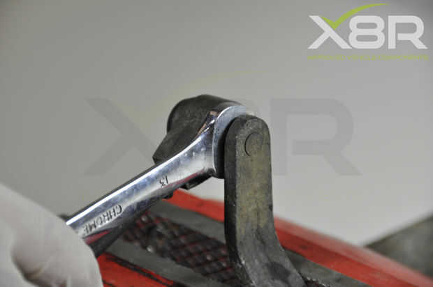Si la varilla no mueve consigue una llave de 13mm, ranura de la llave con el abierto final detrás de la rótula y palanca apagado.