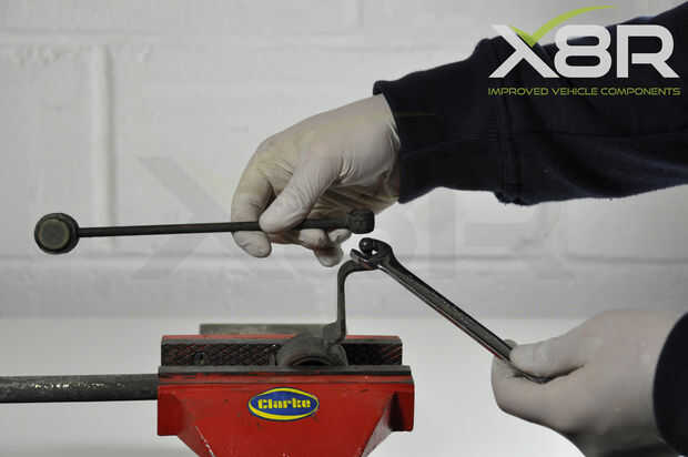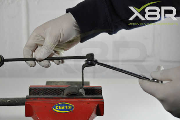 Quitar las barras; consigue una llave de 13mm con el extremo abierto de la llave de la ranura entre la rótula y articulación de la barra y levante la varilla de la bola. A veces éstos sólo estallido hacia fuera, no se alarme si usted necesita para poner un poco de fuerza en-esto puede ser el caso muy a menudo también, una vez que ya haya reventado repetir en el otro extremo.