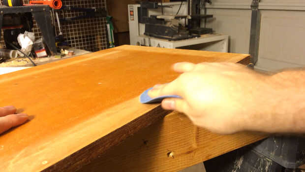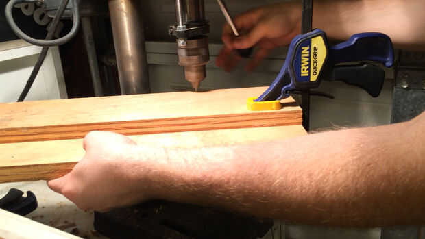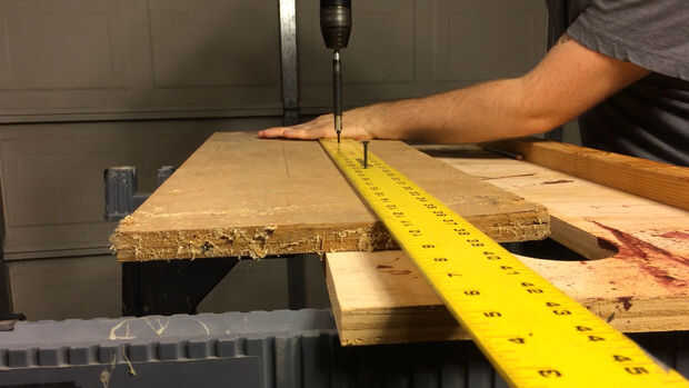 Taladraron previamente los agujeros para los clavos que utiliza. No muestran la colocación de las uñas a propósito porque todo depende de qué madera que usas y cómo deformado es. Usaba uñas más que habría deseado, pero no quería reconstruir esto si viene aparte más adelante.