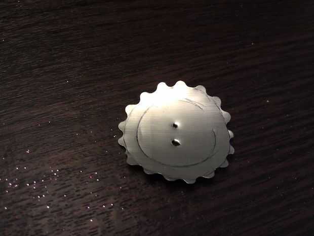 Perfore dos orificios en el centro del disco de aluminio, perforación del lado de aluminio a través de al lado con soda impresa pueden gráfico. Con cuidado hacer cortes de la inmersión de la parte inferior de cada Vieira hacia el centro, parando en la línea del anillo interno. Dé vuelta el disco y añadir un trozo de cinta a la parte impresa del disco. Haga agujeros en la cinta, utilizando los agujeros del disco como una guía. La cinta se utiliza para evitar que los bordes del agujero poked dañe el contenido del anillo.
