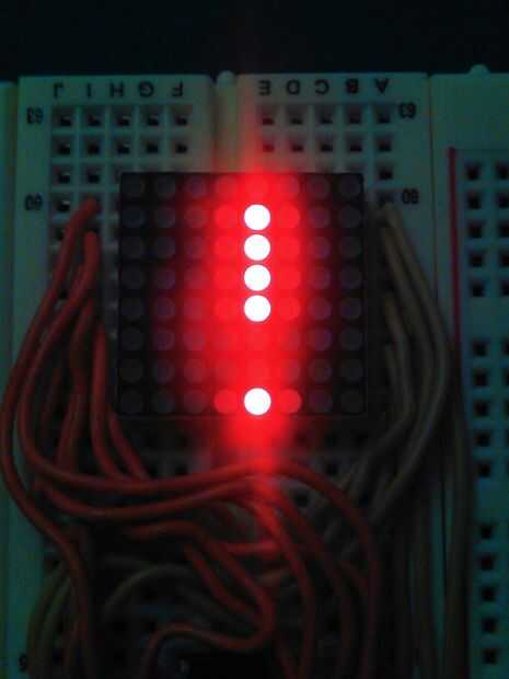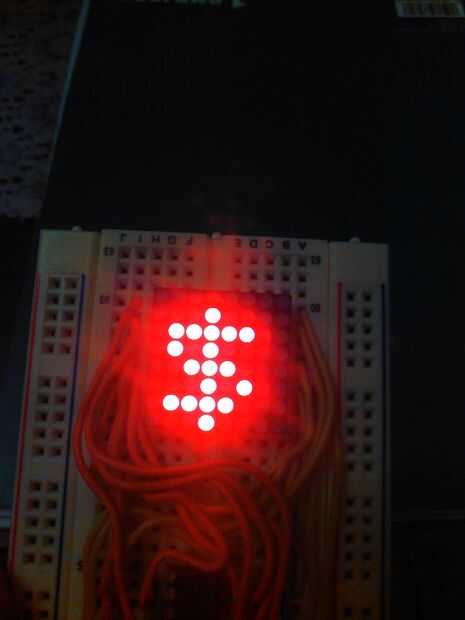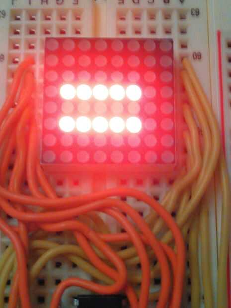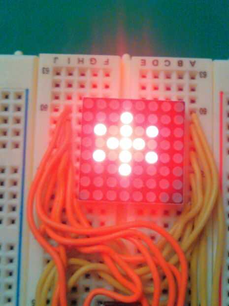 Cargar el código (símbolos), se puede observar que existe un código más grande. Es decir, hay más características agregadas a su código. Sin embargo, cada figura puede ser manipulado por modificar el retardo de myMatrix.clear. En este punto, ya sabes para modificar cada figura en tu matriz de LED 8 x 8. Tome el código si es necesario a comprobarlo de la siguiente página web: http://pastebin.com/ibhjTHcV